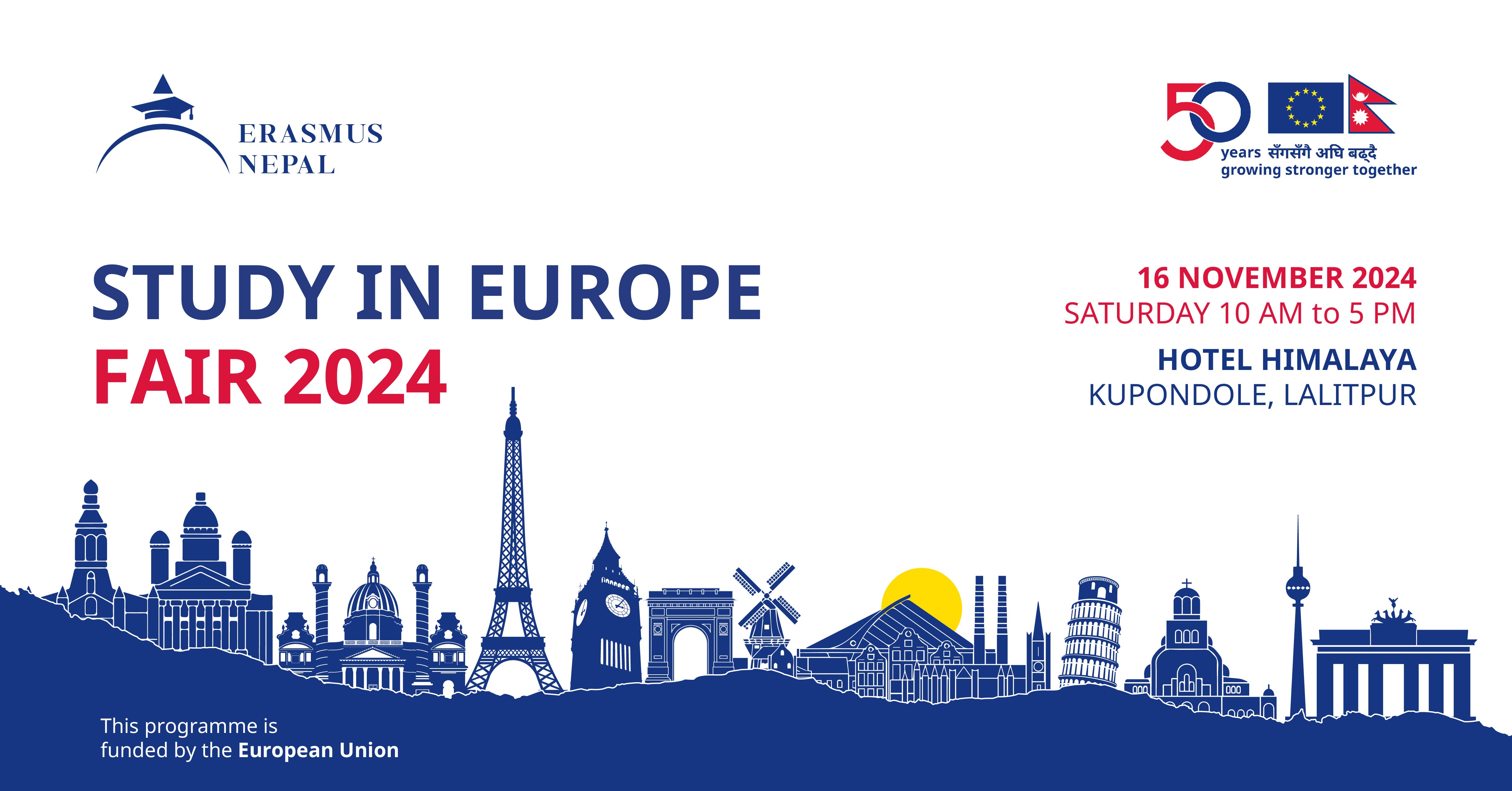 The Study in Europe Fair is an annual event funded by the Delegation of the European Union (EU) to Nepal, in collaboration with EU Member States, to showcase European higher education opportunities to Nepali students.